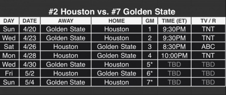 赛后,联盟也公布了所有首轮季后赛的完整赛程。