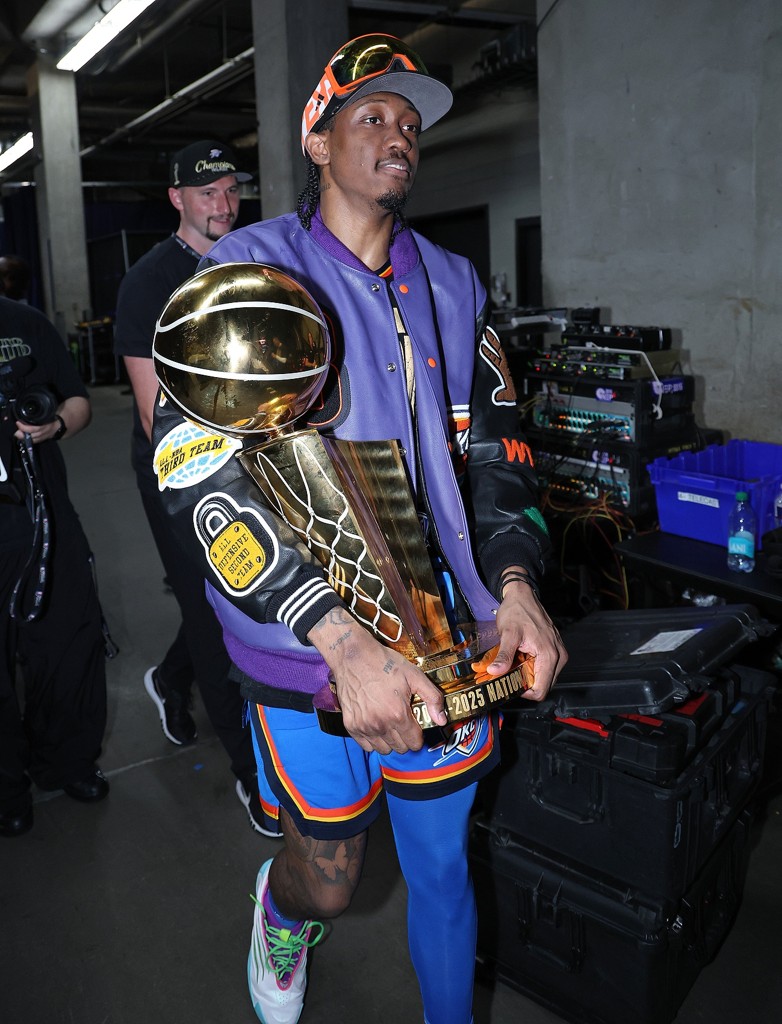 上赛季,杰伦威入选全明星,进入防守阵容二阵和最佳阵容三阵,还帮助雷霆夺得总冠军。