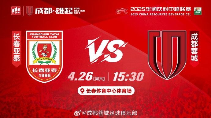 04月26日讯 4月26日15:30中超第9轮,长春亚泰主场对阵成都蓉城。赛前双方比赛名单公布。