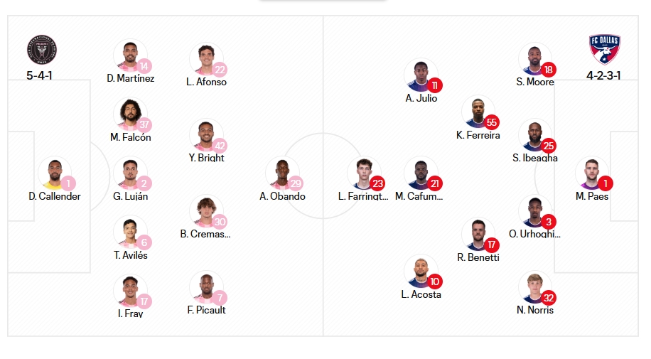4月28日讯 美职联,迈阿密国际主场对阵达拉斯FC。赛前,官方公布了本场的首发名单。