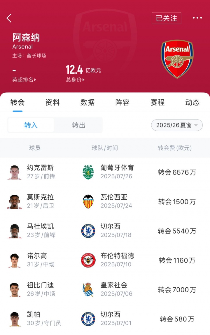 加上此前阿森纳已经官宣的凯帕(580万欧)、祖比门迪(7000万欧分期支付)、诺尔高(1160万欧)、马杜埃凯(5540万欧)和莫斯克拉(1500万欧+浮动),阿森纳这个夏窗的总支出已经达到2.23564亿欧。