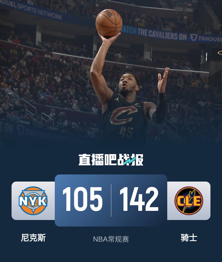 首节之争骑士开局前2分钟仅得2分的情况下迅速找到感觉并打出自己联盟进攻效率第一的状态,尤其是在后半节逐渐进入轮换的时候不断拉大领先,米切尔和加兰的两记三分吹响进攻号角,骑士后半节轰出22-9的攻势一举拉开比分;次节尼克斯表现回落不说,防守端依旧无法限制骑士,后者几乎弹无虚发火力全开,上半场米切尔、莫布里、阿伦、亨特和杰罗姆5人合计32投26中势不可挡,骑士凭借半场77分的攻势取得27分领先进入下半场。休息归来尼克斯虽然保持着不错的进攻但无力阻止对手,节中双方合计12个回合打成11次手感火热,但大比分落后的尼克斯完全制造不了威胁;末节开局骑士上来连着4记三分再送14-6的攻势彻底打垮对手防线,双方之后也没有换上主力的意思鸣金收兵。最终,骑士主场大胜尼克斯迎来6连胜。