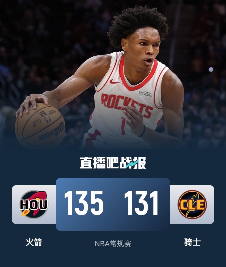 火箭(30-14):申京26分8板3助、杰伦-格林26分3板4助、阿门23分14板10助2帽、范弗里特20分3板6助、亚当斯14分4板2助、狄龙13分6板2断、泰特7分3板、伊森4分3板、惠特摩尔2分1板1助。