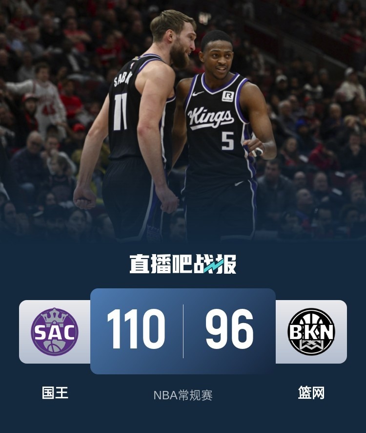 此役一上来双方稍显慢热,福克斯早早开张率队占优,但末段国王4分钟内一分未得,篮网内外结合回敬15-0攻击波,首节结束时篮网确立8分优势,次节回来,篮网进攻停滞,国王抓住机会一波12-2抹平分差,篮网内外开花稳住局势,半场战罢,篮网依然领先7分。短暂休整后国王再度反超,两队你来我往陷入鏖战,国王领先2分进入末节,末节上来,篮网进攻停滞,萨博尼斯奉献全能发挥,国王乘胜追击终结悬念,最终国王110-96大胜篮网送对手7连败。