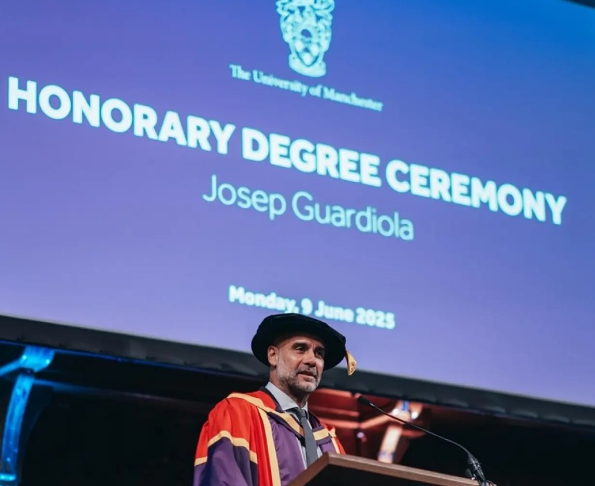06月10日讯 曼城主帅瓜迪奥拉参加了曼彻斯特大学授予其荣誉博士学位仪式,该荣誉旨在表彰他"九年来在球场内外为这座城市作出的非凡贡献"。...