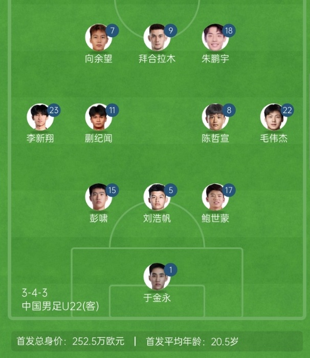 09月06日讯 今晚19:35,U23亚洲杯预选赛第2轮,中国男足U22vs北马里亚纳群岛U23。从公布的赛前首发来看,中国男足U22本役对首发阵容进行了...