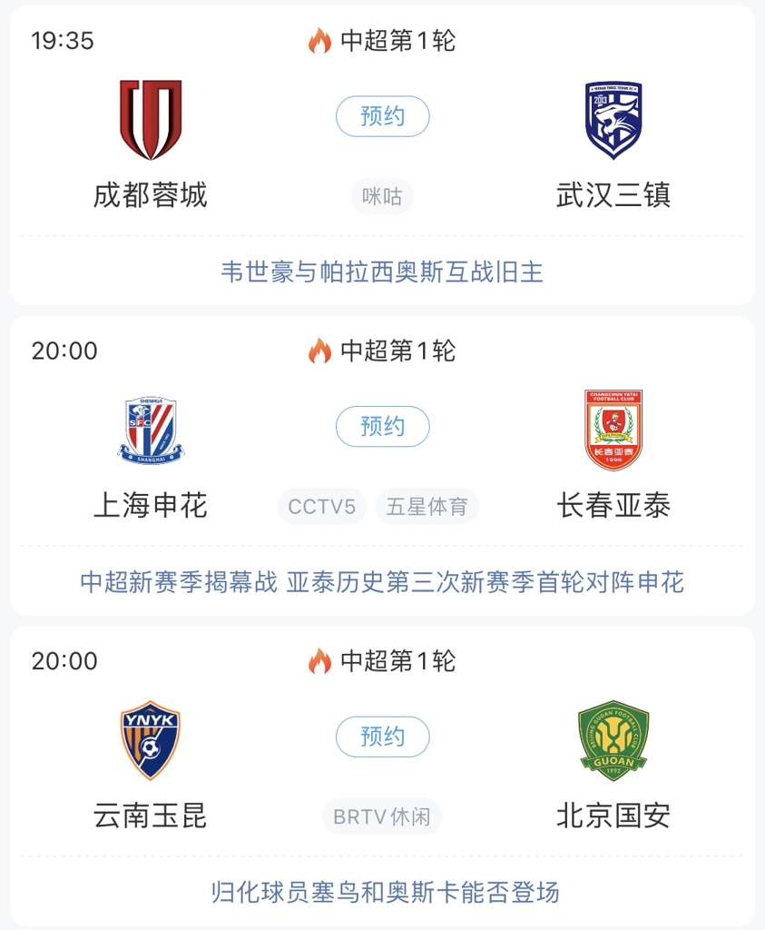 今晚,2025赛季中超联赛就将拉开帷幕!上海申花承办开幕式,主场迎战长春亚泰;球市火爆的成都蓉城迎战武汉三镇;中超新军云南玉昆坐镇玉溪...